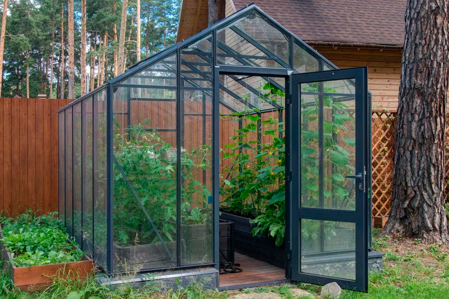 - Что за теплица: модель из линейки Гарденикс с усиленным каркасом и дополнительными инженерными решениями, идеально подходит под стекло.